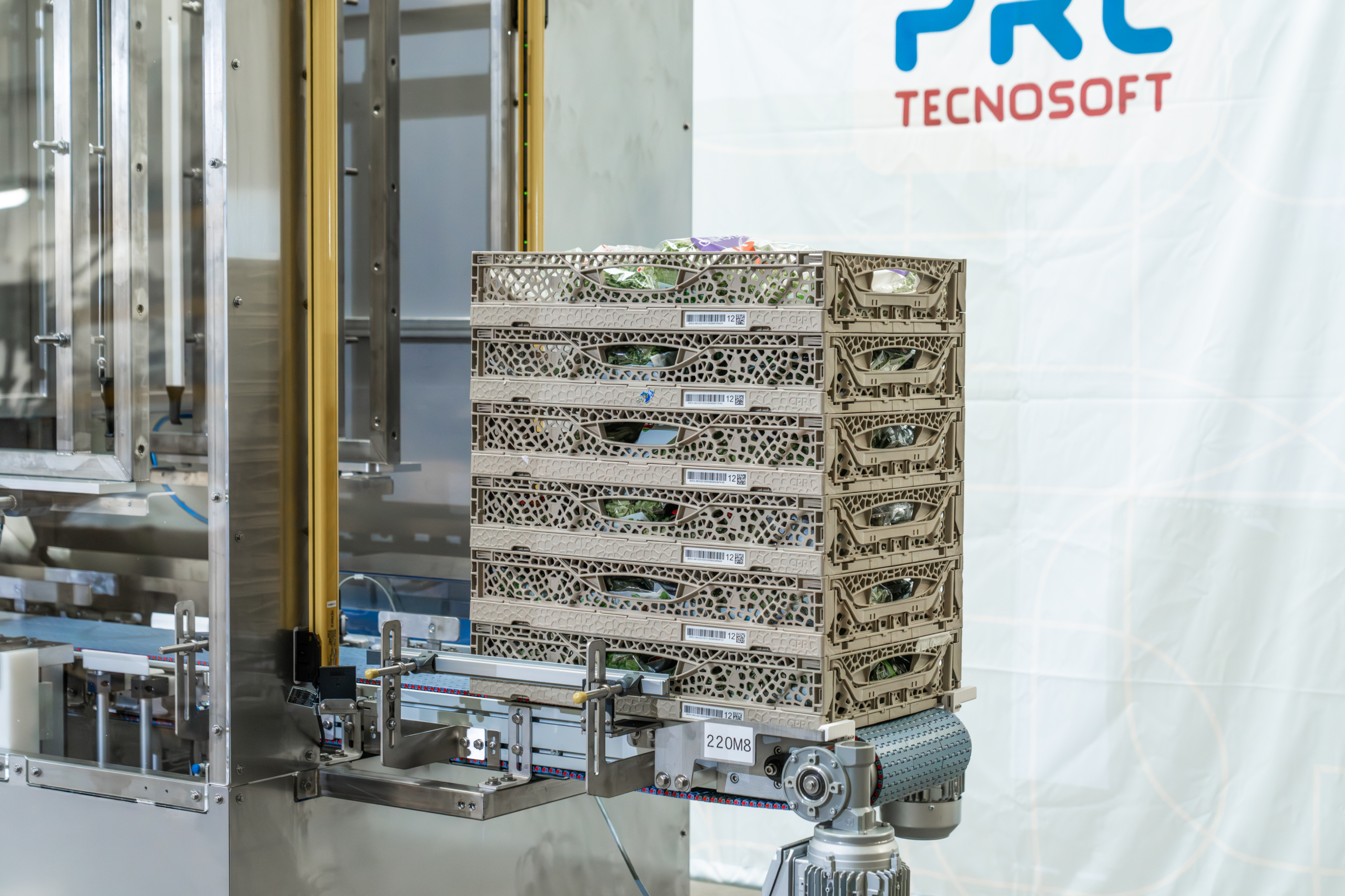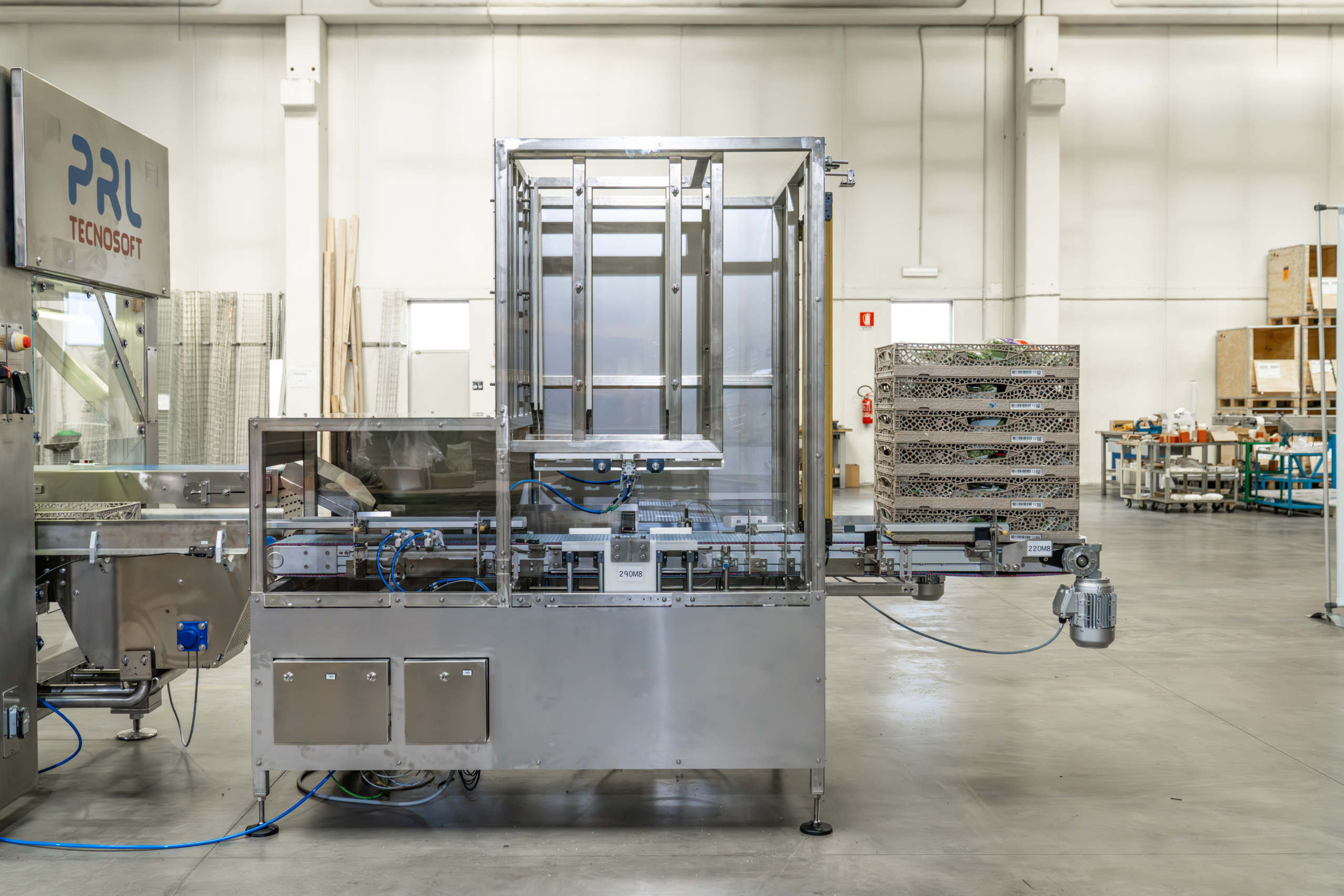 PRL Tecnosoft progetta e realizza impilatori automatici per la gestione di casse, vassoi e contenitori riutilizzabili. Questi sistemi ottimizzano lo spazio, riducono il lavoro manuale e garantiscono una movimentazione rapida, sicura e precisa.