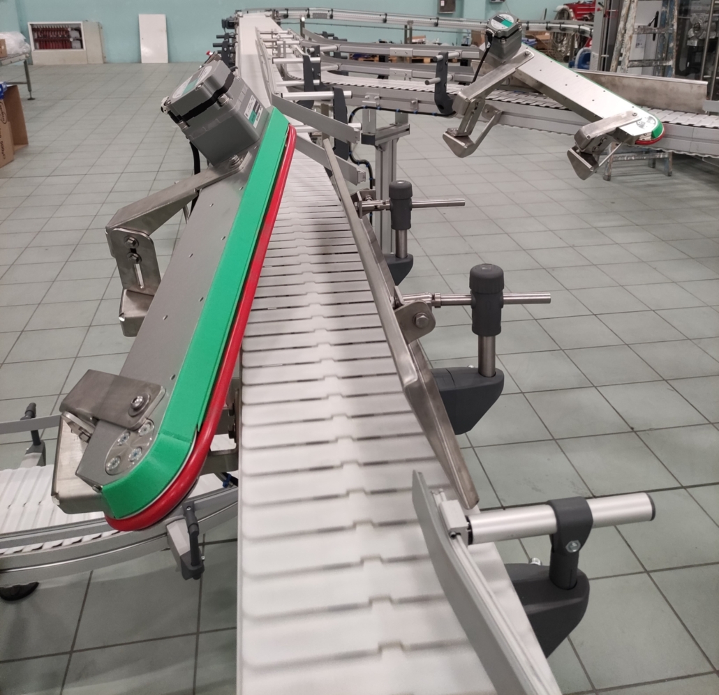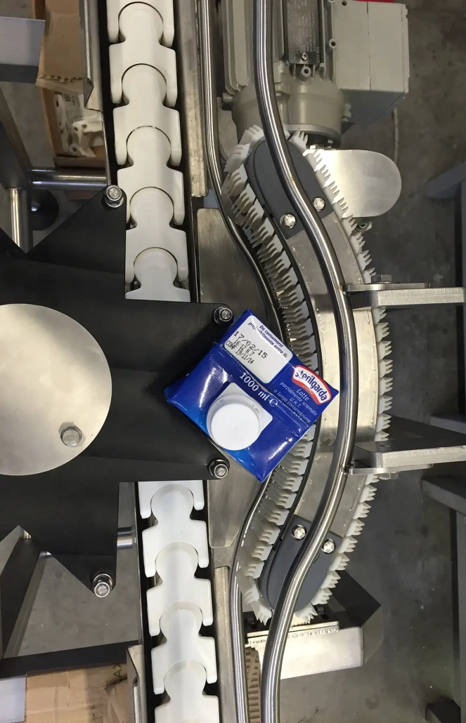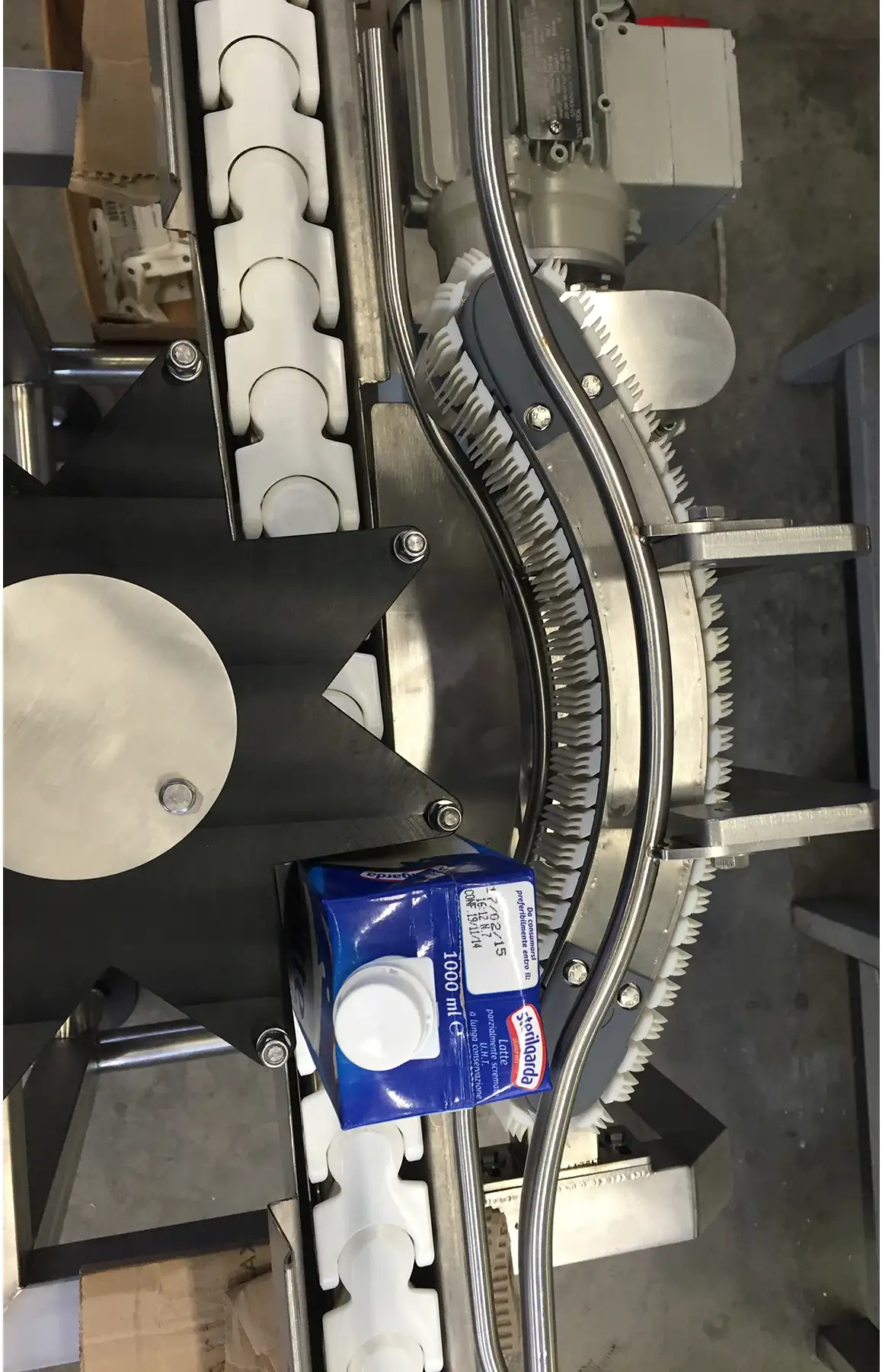 Ideali per ruotare confezioni a 90° o 180°, in modo sincronizzato e preciso, senza interruzioni della linea. Permettono di gestire prodotti con orientamenti variabili o layout complessi. - Raddrizzatori